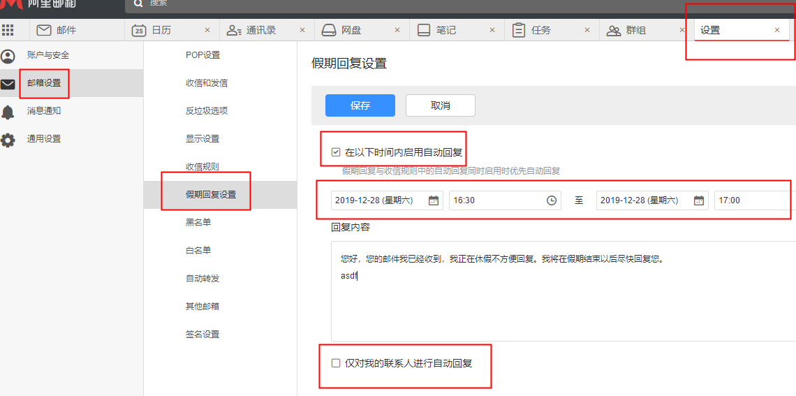 【苏州阿里邮箱】如何设置假期回复?